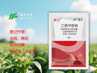 异力®75%乙酰甲胺磷可溶粉剂,可有效防治水稻二化螟和棉花棉铃虫